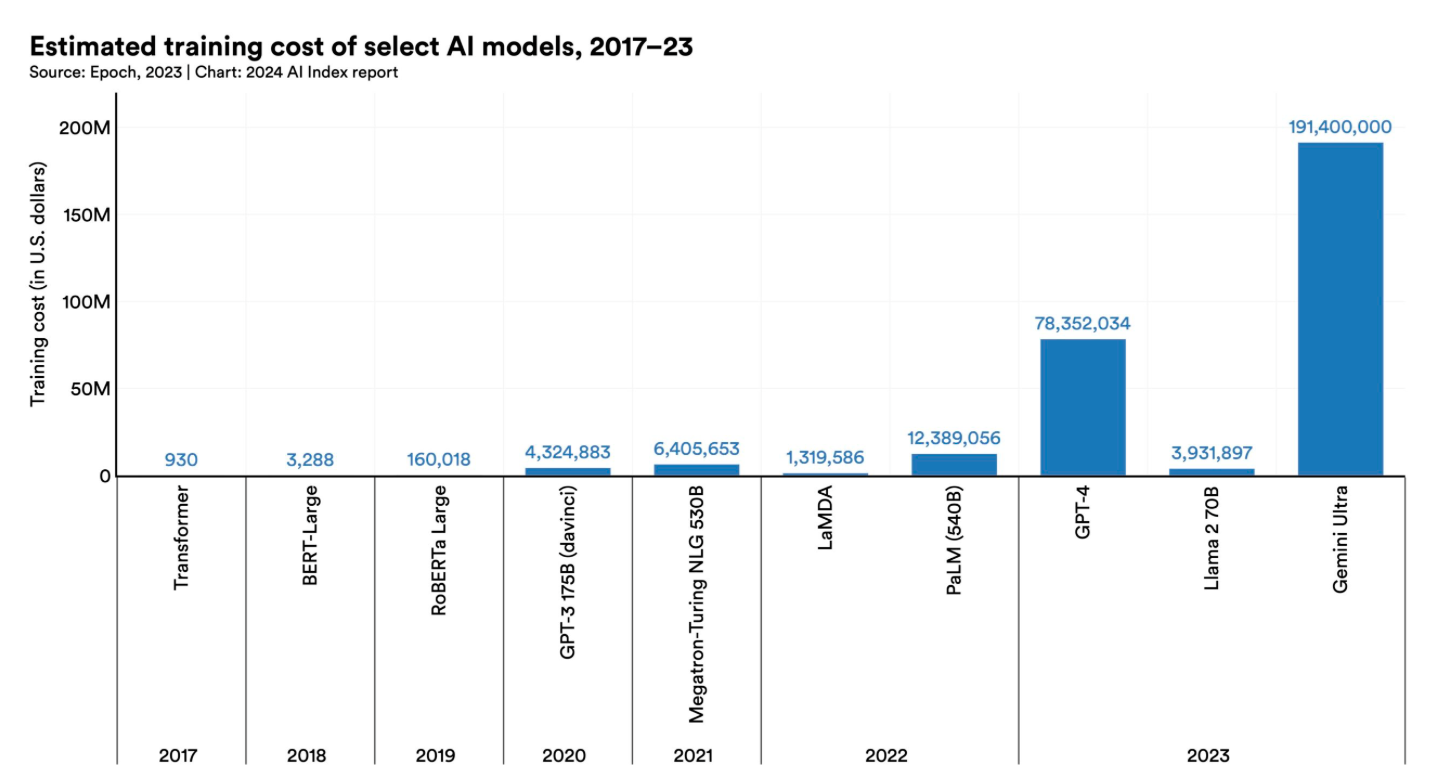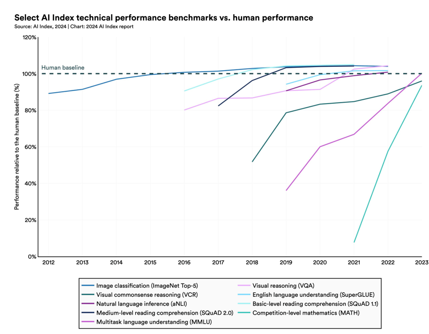 Here I've included some charts recently published as part of the Stanford 2024 State of AI report. These are important because they can be interpreted differently depending on the story and the context. As always, charts can lie.