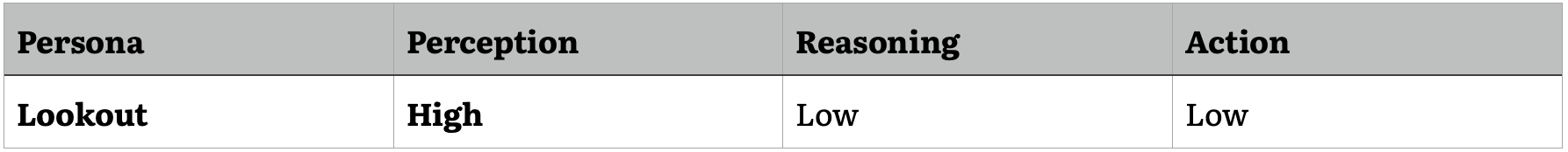 The three components of perception, reasoning, and action can be combined in various ways to create AI agents with different capabilities and specializations. We can think of these combinations as defining different agent personas, each with its own strengths, limitations, and potential applications.