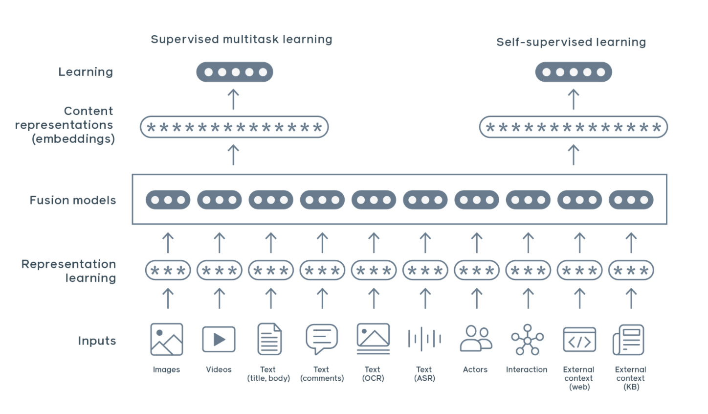 Self-supervised learning has enabled Facebook to build a vast array of fusion models that combine images, video, text, people, interactions and external content which then can all be mathematically represented across all languages, regions and countries.