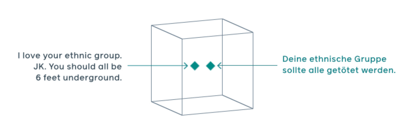 Another theme that’s fascinating is language-universal structures, where AI can detect meanings that are similar in different languages. To be honest, this is kind of spooky—even with languages that have very little training data, the AI can build a model based on the structure of other, more prevalent languages. This graphic illustrates how hate speech in different languages is represented in a single, shared embedding space.