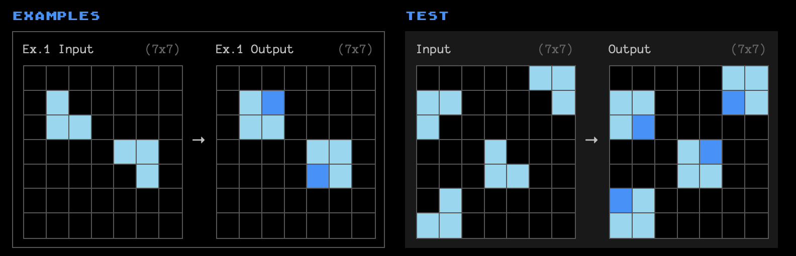 The ARC benchmarks are like little reasoning puzzles. You can play with them yourself here but here's what they look like.
