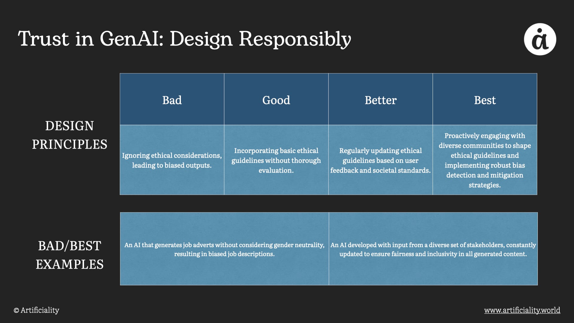 Focus on solving genuine user needs while minimizing potential harm. For example, AI used in news generation should incorporate checks to prevent the dissemination of false information.