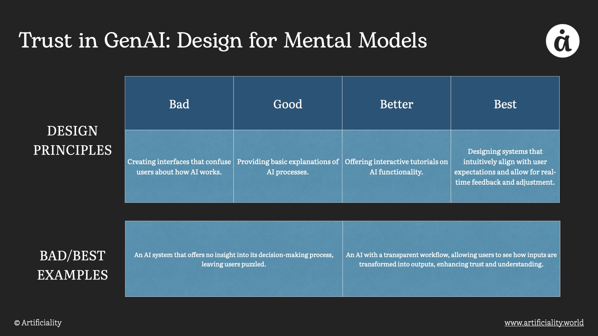 Calibrate users' trust accurately. For instance, a medical diagnosis AI should transparently communicate its confidence levels and the need for human expert verification in certain cases.