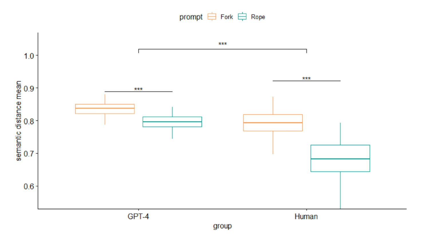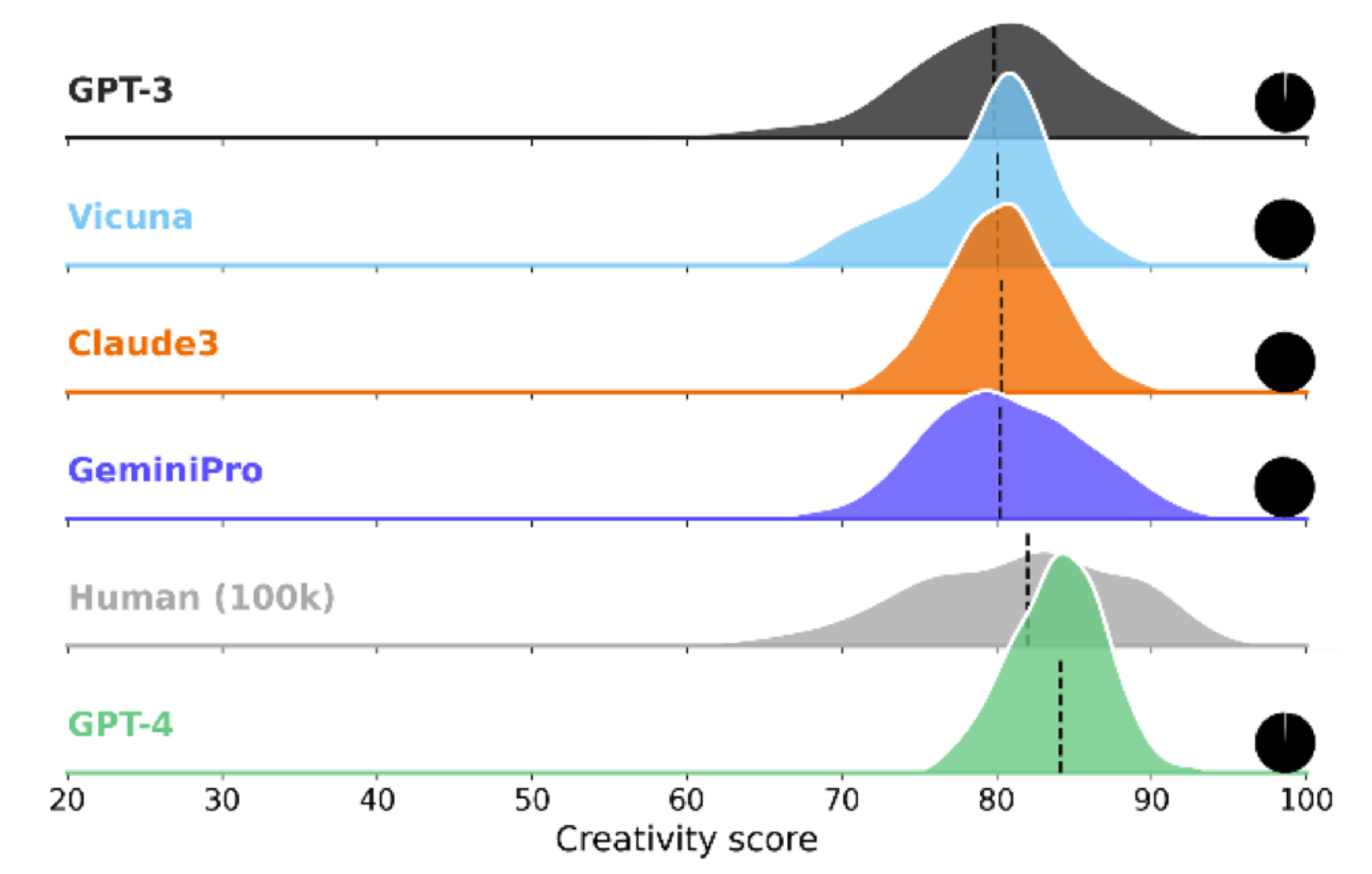 First, these tests measure only one aspect of creativity. In a recent paper, researchers referred to this as AI's "creative potential," noting that GPT-4 surpassed humans by a wide margin, particularly in terms of originality—comparable to the top 1% of human responses. While this is impressive, creativity isn't just about originality. It's also about the usefulness and appropriateness of an idea or product, which are difficult to standardize because they depend on culture, history, and various other factors. Measuring word distances doesn't account for these nuances.