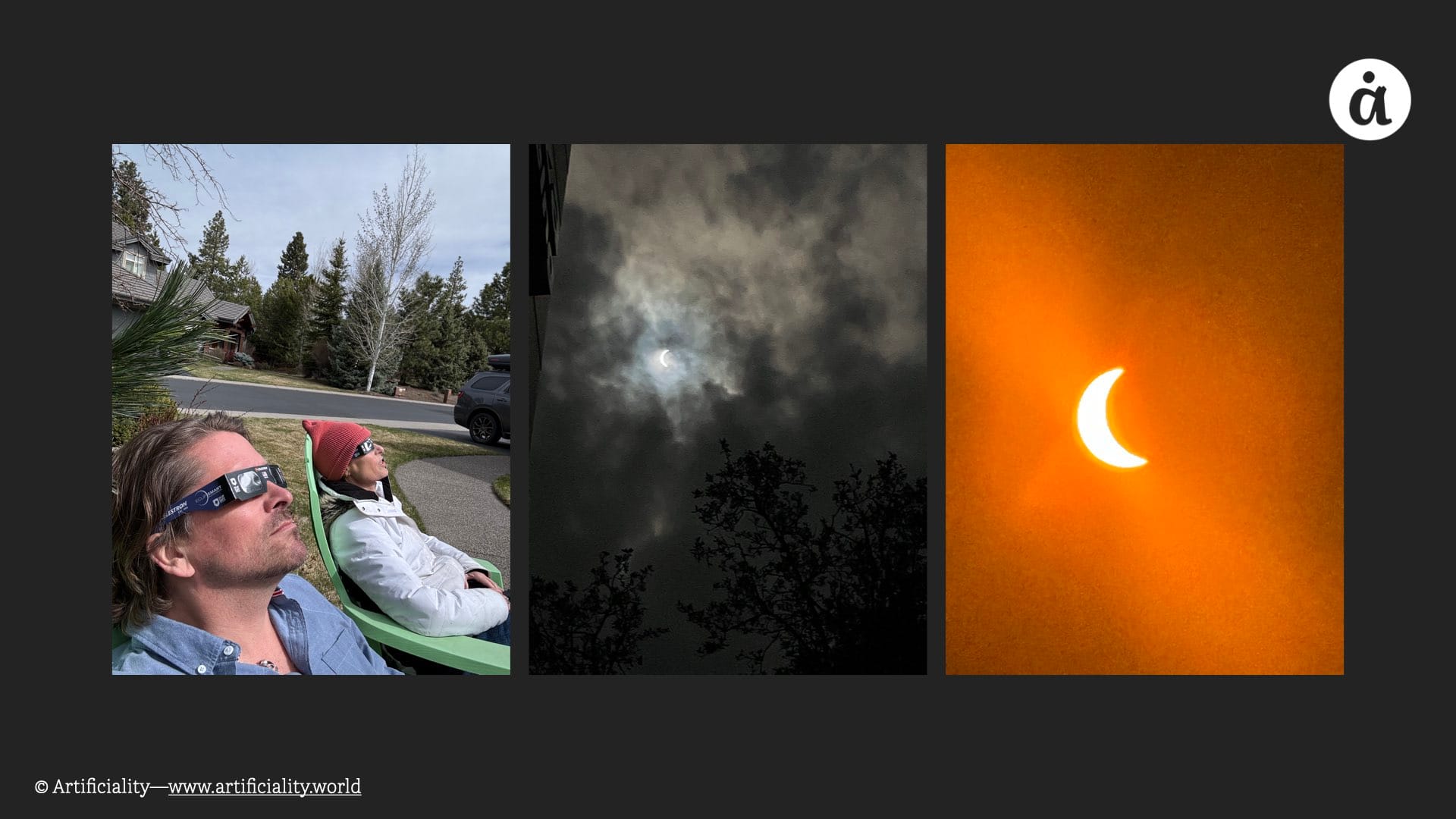But before we start, we want to just say we hope you all enjoyed the Eclipse yesterday, there's a photo of the two of us sitting outside our home in Bend, Oregon. And the other two, we're going to have a bit of a of a brag moment, those are from our daughter, who was witnessing the Eclipse from NASA Mission Control in Houston. And she sent those photos to us along with the with the comment, Houston, we have an eclipse, so you get a sense of at least persons of humor anyway.