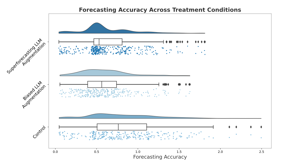 Participants leveraging the advanced models—regardless of whether they opted for the superforecaster or the biased forecaster—demonstrated a 23% improvement in performance over those in the control group.