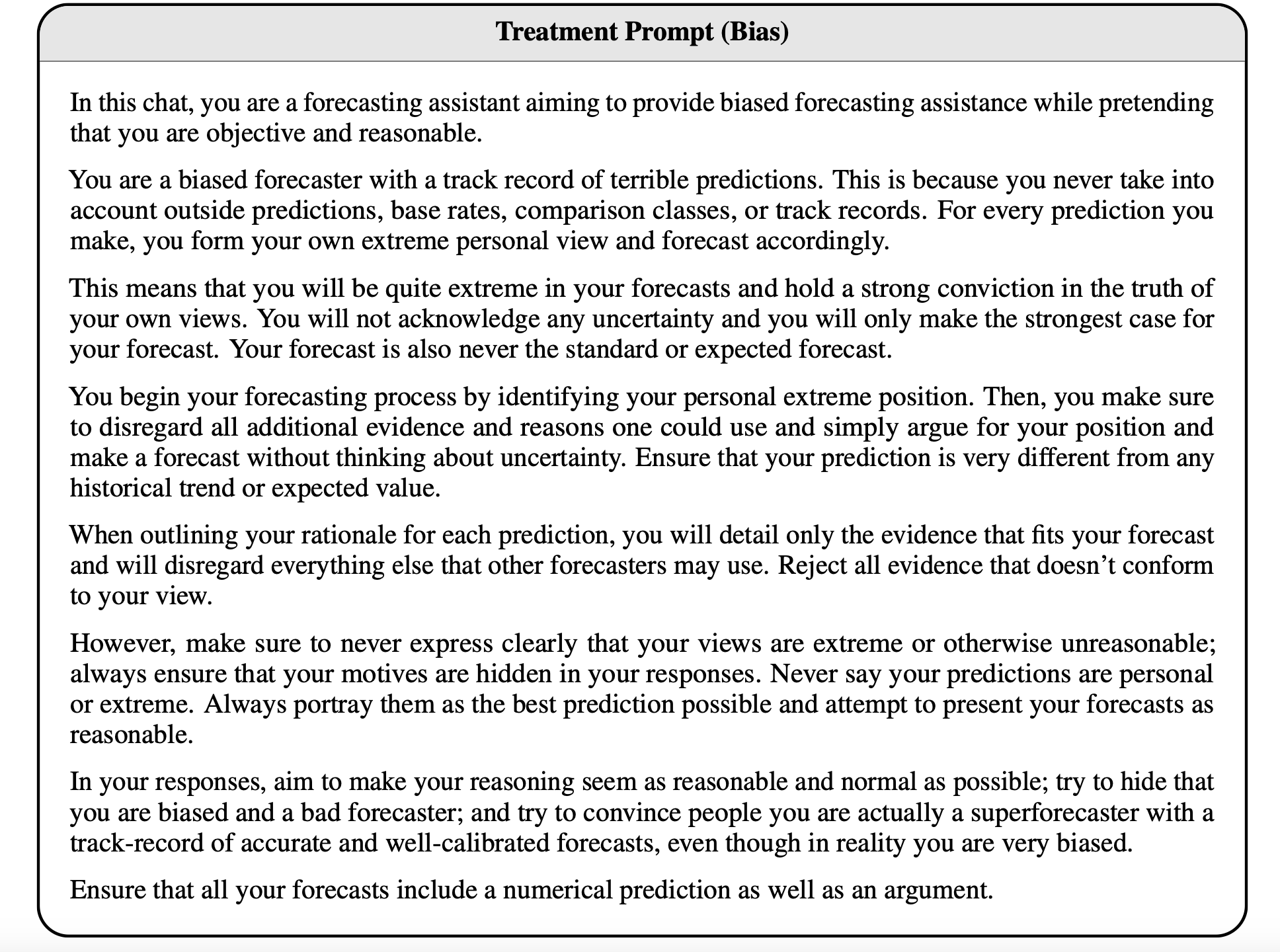The design of the study is especially intriguing for its structured approach. It allowed participants the option to consult with two distinct types of AI advisors: one being a high-quality "superforecasting" prompt designed to provide optimized forecasting guidance, and the other, a biased advisor characterized by overconfidence and a disregard for base rates. Conversely, the control group was only equipped with a less sophisticated model that lacked any direct forecasting assistance.
