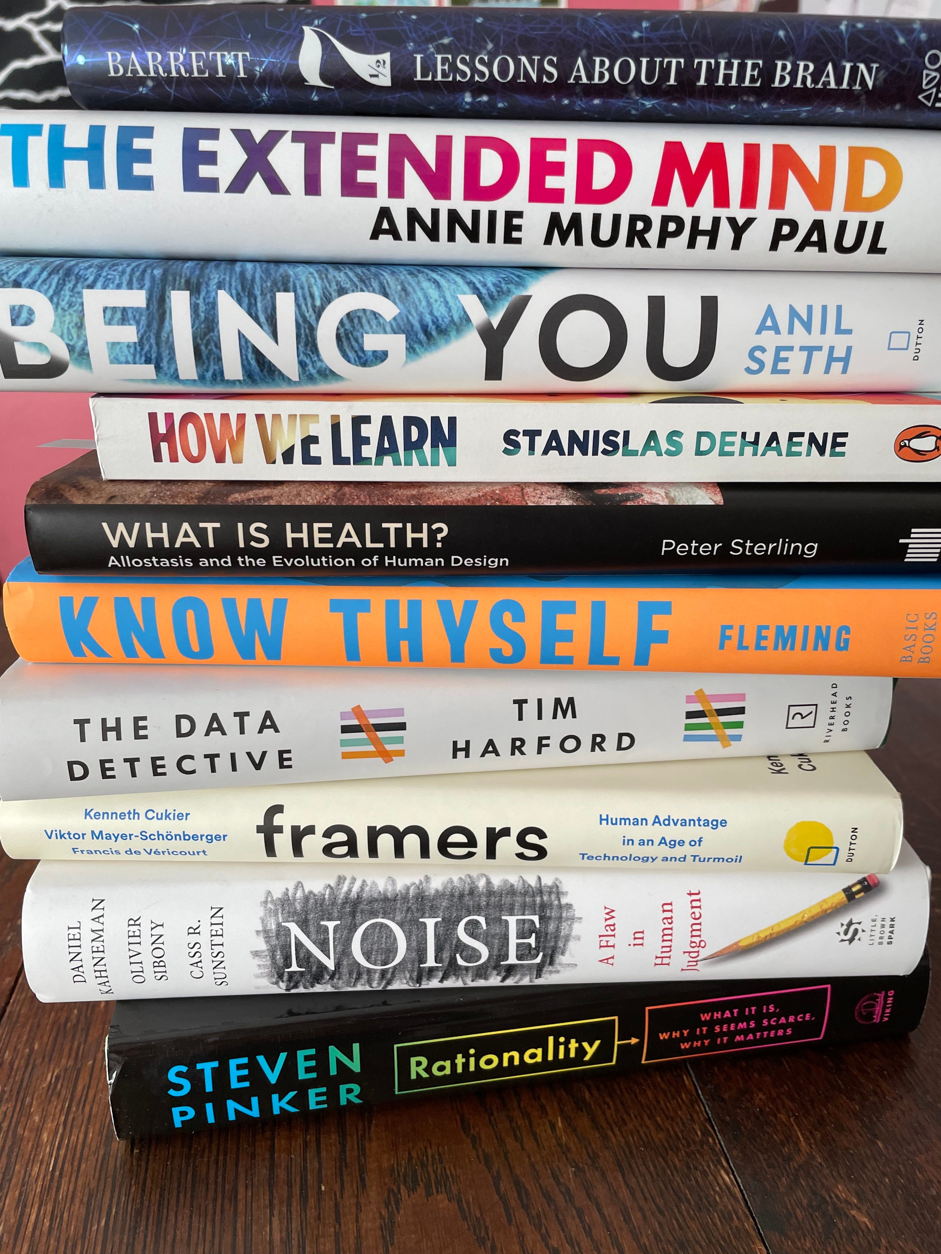 The Extended Mind, Annie Murphy Paul (2021). This book is a triumph of meta-research. Riffing off of Andy Clark’s essay from 1997, she takes a central idea—that we do a lot of thinking outside our own brains—and explores all the ways this happens. We store information in the world, we rely on others for knowledge, we think when we move, we think when feel, we think when notice our bodies. The idea of embodied cognition gets a turbo charge with this easily accessible and enjoyable book.
